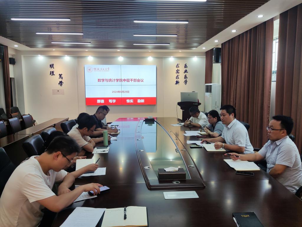 6月28日上午,我院在雁山校区08201会议室召开学院中层干部工作会议,学院领导班子成员,各教研室(办公室)正、副主任等参加了会议,会议由江玲书记主持。