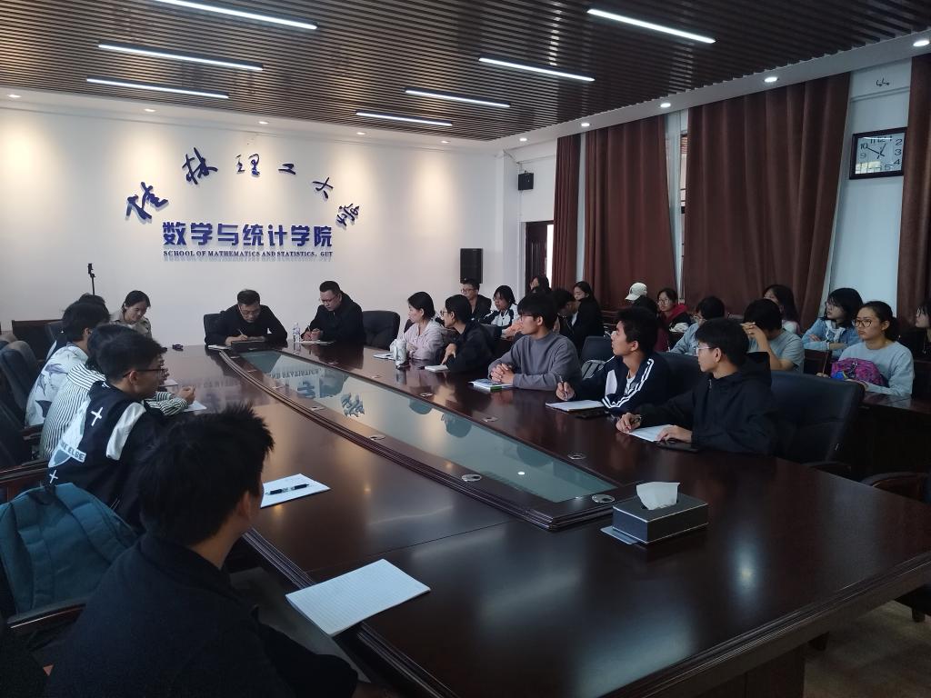 1119日,为积极落实学校2024年秋季学期期中教学检查要求,进一步提升高等数学课程教学质量,学院在雁山8201办公室召开了高等数学课程学生代表座谈会。会议由学院副院长唐国强主持,教学督导曾翔、基础数学教研室副主任刘淑芹一同参加。