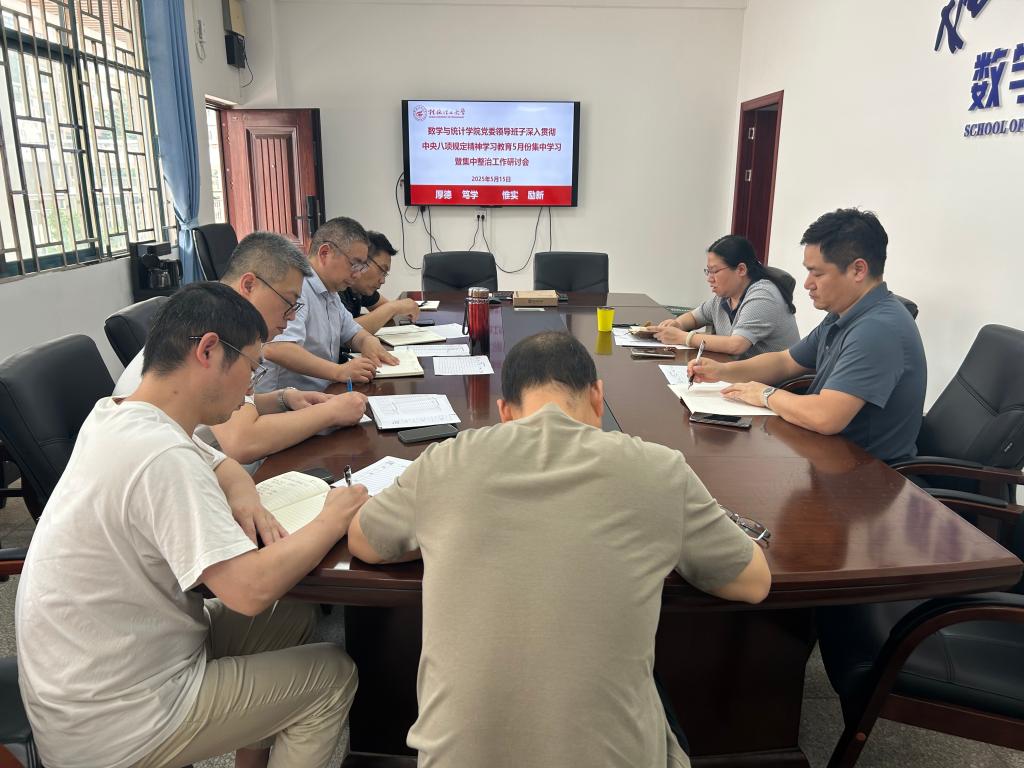 5月15日,学院党委领导班子深入贯彻中央八项规定精神学习教育5月份集中学习暨集中整治工作研讨会在雁山校区08203会议室举行。会议由学院党委书记江玲主持。