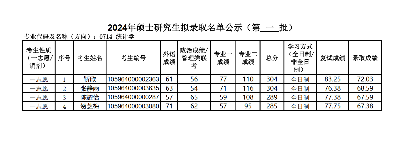 2024年硕士研究生拟录取名单公示(应用统计第一批)