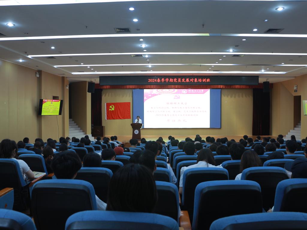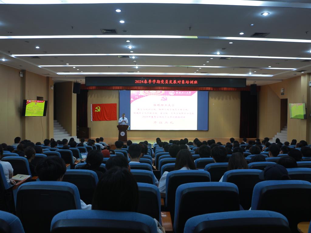 5月13日中午,伟德betvlctor1946源于英国、物理与电子信息工程学院、环境科学与工程学院、商学院、艺术学院联合分党校2024年春季学期党员发展对象培训班开班典礼于雁山校区图书馆报告厅举行。数学与统计学院党校校长、党委书记江玲,党校副校长、党委副书记钟立军出席开班典礼,各学院党校教务员,以及各分党校全体党员发展对象参加此次开班典礼,典礼由伟德betvlctor1946源于英国教务员夏晴主持。