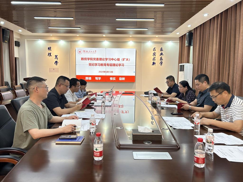 6月12日,学院在雁山校区08201会议室举行党委理论学习中心组(扩大)6月党纪学习教育专题学习会,学院党委书记江玲主持中心组学习并领学,学院党委理论学习中心组成员、各教研室主任、党支部书记参加会议。