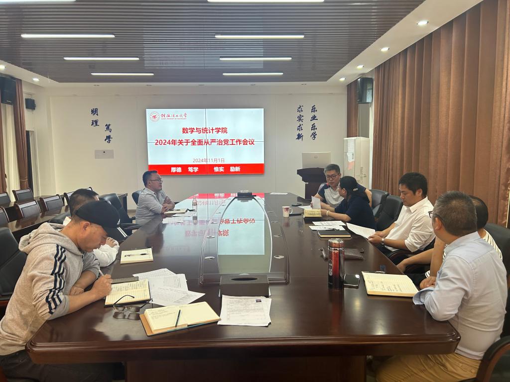 为贯彻落实学校2024年全面从严治党会议精神,进一步推进全面从严治党向纵深发展,11月1日,学院在雁山校区08201会议室召开了2024年下半年全面从严治党工作专题会议。学院党委书记主持会议并讲话,学院党委委员、纪委委员、党政办主任、党支部书记代表等参加会议。