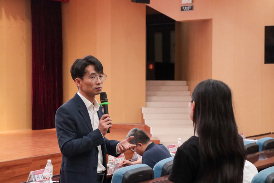 在互动交流环节,现场气氛热烈,同学们积极提问,就职业规划和就业方面的问题与何凡副总裁进行了深入交流。何凡副总裁耐心解答,为同学们提供了专业的指导和建议,帮助他们更好地认识自我、规划未来。