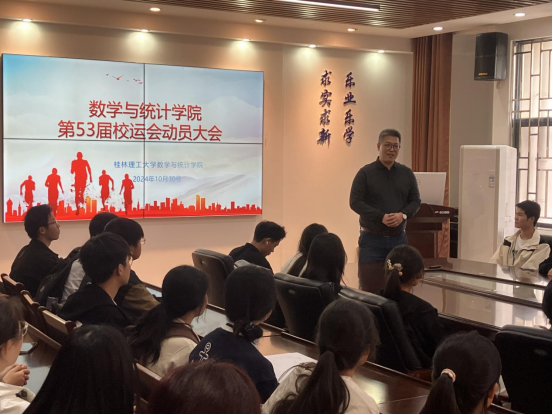 激励运动员们以最佳状态迎接即将到来的第53届校运会,伟德betvlctor1946源于英国于2024年10月30日在雁山校区08201会议室召开了动员大会。学院党委副书记钟立军、团委副书记彭娇娇出席,全体参赛运动员参加了此次会议。