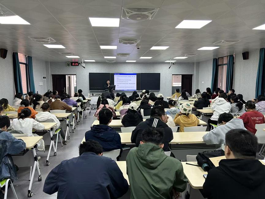 会议伊始,徐锋老师先是细致讲解了毕业生毕业的学分要求,明确指出学分要求是同学们毕业的基础门槛,同学们需根据实际情况合理规划,以达到毕业的综合学分标准。接着,他着重强调了毕业论文的规范,从论文格式、内容结构到研究方法、数据引用等方面都做了详尽说明,为同学们撰写高质量毕业论文提供了有力指导。在最后的答疑环节,同学们纷纷抛出心中疑问,徐锋老师均给予耐心且专业的解答,现场互动频繁,气氛活跃。随后,钟立军副书记进行总结发言。他语重心长地强调毕业生要抓紧时间找工作,直言越到后期就业竞争越发激烈,工作机会也会相对减少,鼓励大家尽早签约,为自己的未来职业发展抢占先机。同时,针对外出实习的同学,他着重提醒务必按流程审批,严格遵守学校相关规定,在外实习要时刻注意自身安全,与学校、老师及同学保持联系,确保实习过程顺利且安全。