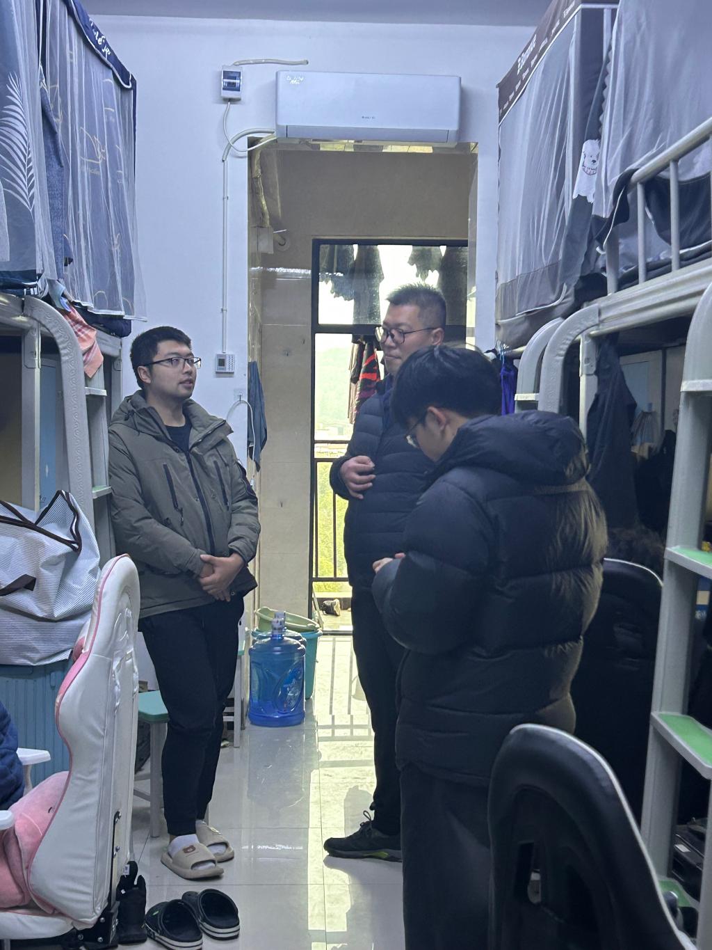 学院党委副书记钟立军与兼职辅导员韦巍走访研究生宿舍