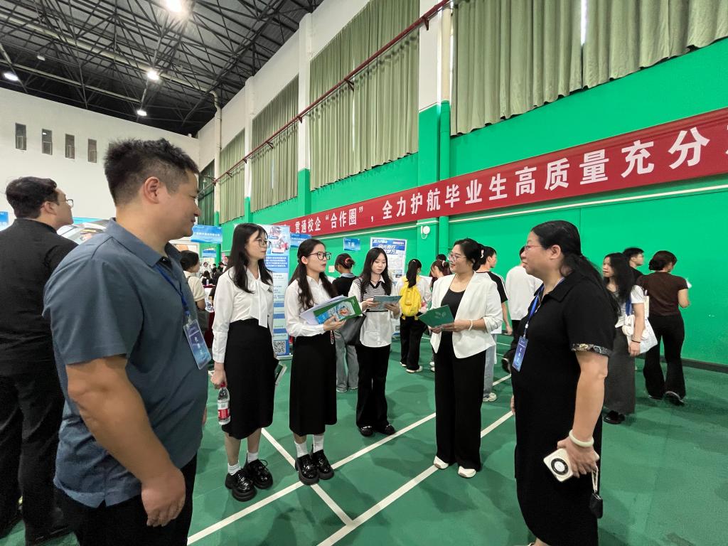 双选会现场,数学与统计学院领导率先走访各企业展位,与用人单位深入交流,详细了解与学院相关专业适配岗位的招聘需求、薪资待遇及发展前景,为毕业生筛选优质就业信息。同时,老师们与毕业生亲切交谈,解答他们的求职困惑,并围绕简历优化、面试技巧等问题给予针对性指导,鼓励学生们主动出击,抓住秋招的机会,全面做好就业准备工作,展示自己最佳的求职精神面貌,应聘上心仪的工作岗位,尽早落实工作。