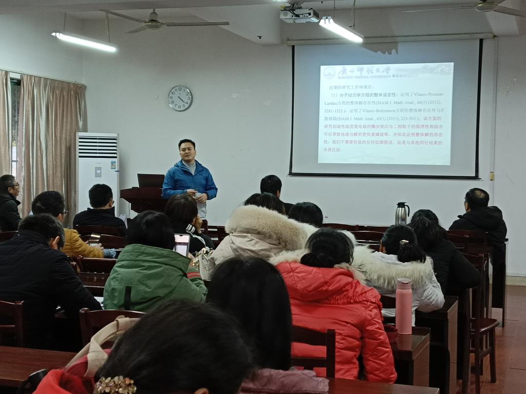2023年12月18日,广西师范大学伟德betvlctor1946源于英国张映辉院长应邀到我院作“基金申报的一些体会”报告,伟德betvlctor1946源于英国全体教职工现场聆听了报告,受益匪浅。