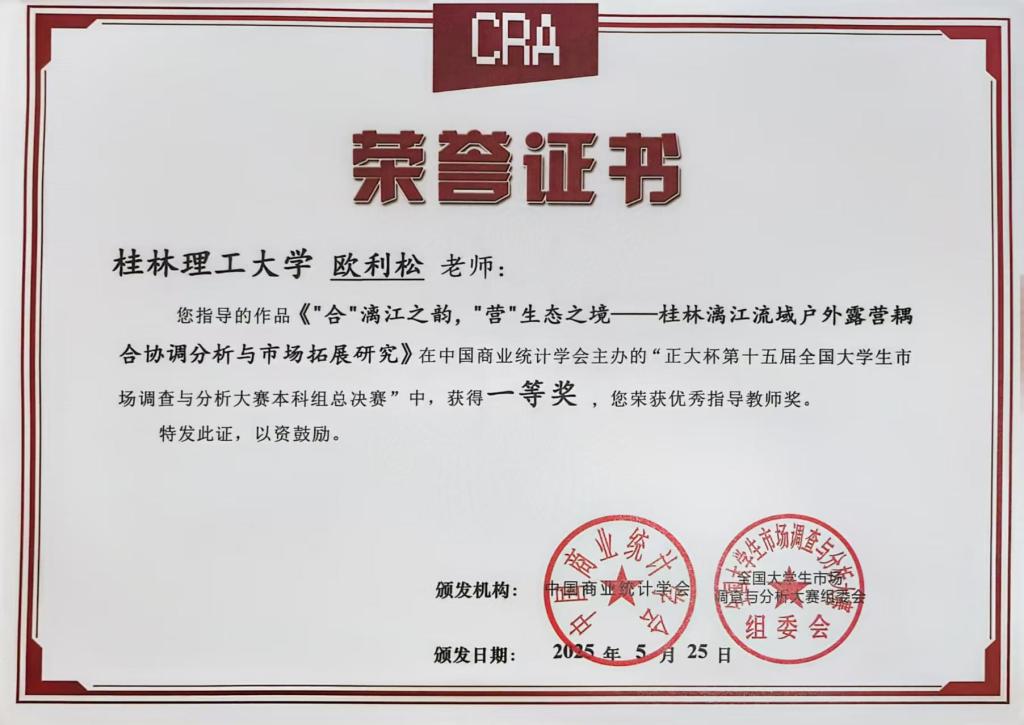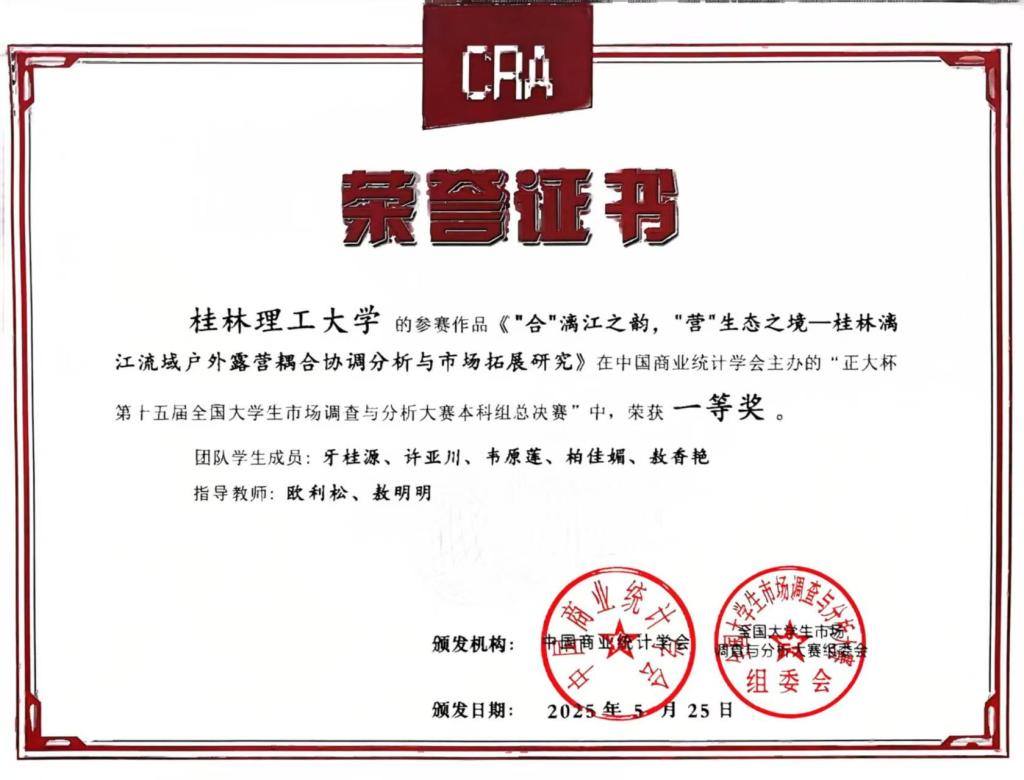 5月24至25日,由中国商业统计学会主办、正大集团冠名、浙江财经大学承办的“正大杯”第十五届全国大学生市场调查与分析大赛本科组落下帷幕。本届大赛本科组共有995所学校,28.2万名学生报名参赛。全国共61353支团队参加了校赛,10946支团队参加了省赛。经过激烈角逐,共有386支团队胜出并成功参加了全国赛初赛,经过7个月的层层选拔,最终有273支团队脱颖而出,成功晋级全国总决赛。最终,伟德国际1946参赛队伍在激烈的全国总决赛中表现突出,参赛作品《“合”漓江之韵,“营”生态之境——桂林漓江流域户外露营耦合协调分析与市场拓展研究》荣获全国一等奖,充分展现了我校学子扎实的专业素养与出色的实践能力。