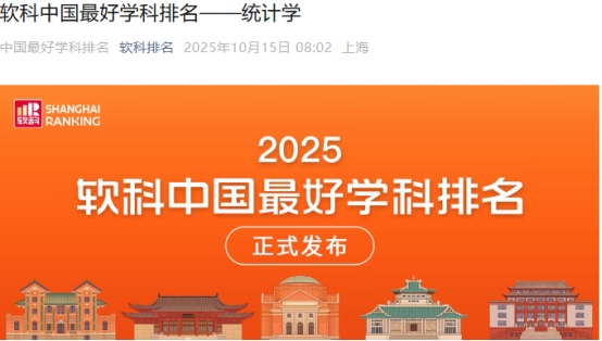 10月15日,权威高等教育评价机构软科正式发布“2025软科中国最好学科排名”,伟德betvlctor1946源于英国统计学专业荣登2025软科中国最好学科排名。