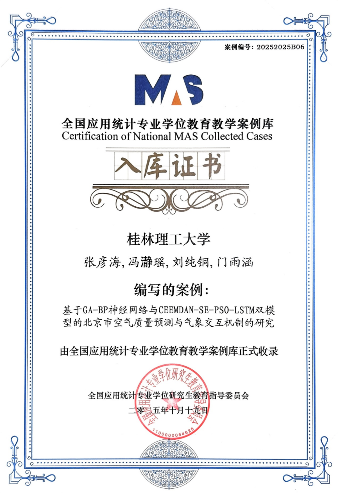 学院根据研究生的实际需求,实行“导师负责+团队协作+实践赋能”的培养模式。每位导师都会结合学生的学术兴趣和潜力,制定个性化的培养计划,从选课题、查资料到写论文,全程跟进指导。为了拓宽学生视野,学院还定期办“数统学术论坛”,邀请国内外专家来讲课,一年下来办了20多场学术活动,让学生在交流中碰撞出思想火花。同时,学院积极搭建高水平科研平台和实践实习平台,鼓励研究生参与国家级科研项目,在实战中锤炼科研能力。据统计,2025年,研究生发表SCI、EI收录论文30篇,有3名研究生共同撰写的应用统计案例成功入选“全国应用统计专业学位教育教学案例库”,这是我校统计案例作品首次入选国家级教学库;有8名研究生被桂林雁山检察院聘为检察官助理,参与的《民间借贷纠纷虚假诉讼监督案》项目获评自治区“典型案例”。