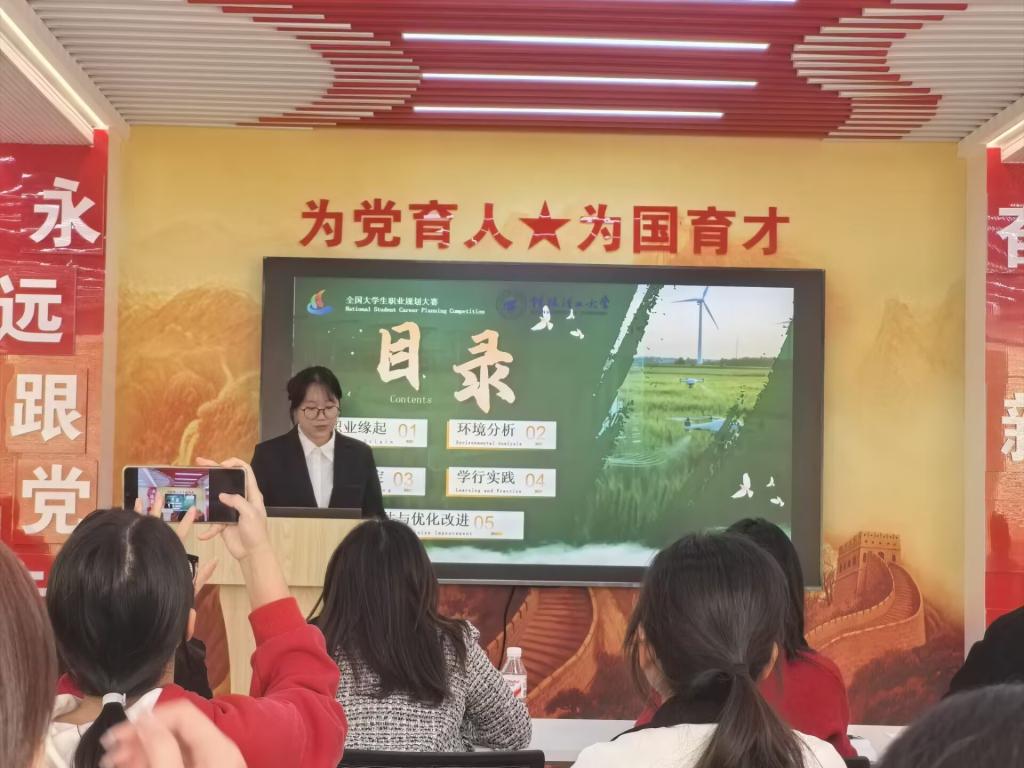决赛现场,参赛选手围绕目标缘起、职业认知、发展规划、能力实践等核心内容,借助精心制作的PPT和生动演讲,全面展示了他们对未来职业的深刻思考与充分准备。从行业趋势分析到个人能力提升,从短期目标设定到长期发展布局,每一份规划都彰显出数统学子对未来的清晰洞察与坚定追求。