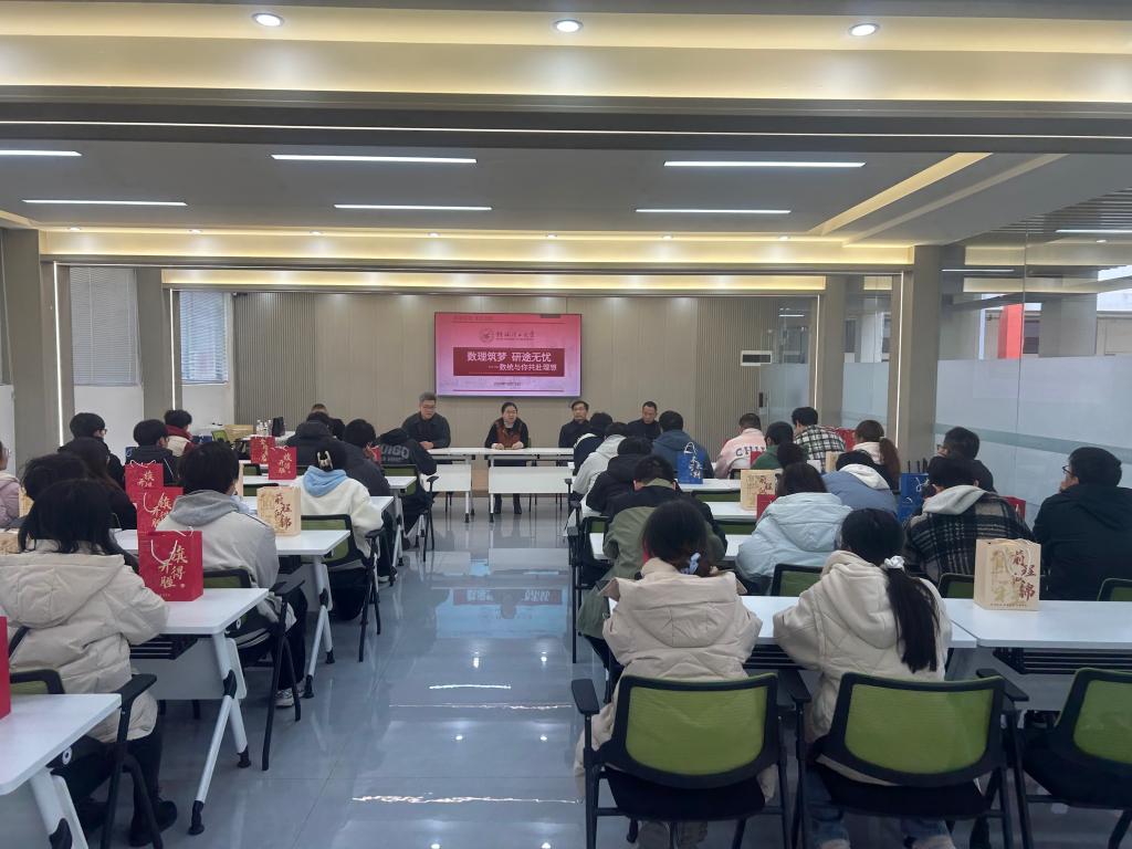 12月15日,伟德betvlctor1946源于英国“数理筑梦 研途无忧”考研学子慰问活动在雁山校区10B栋负一楼考研规划指导中心温情举行。学院党政领导班子、各专业教研室主任,以及全体辅导员莅临现场,为正处于紧张备考关键阶段的2026届考研学子加油鼓劲、纾解压力。活动由党委副书记钟立军主持。