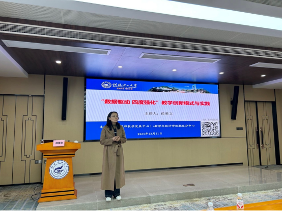2024年12月11日,暨南大学经济学院副教授、博士生导师,全国教学创新大赛一等奖获得者侯雅文应我校邀请,莅临雁山校区行知楼406B会议室,为师生带来了一场题为“‘数据驱动 四度强化’教学创新模式与实践”的精彩报告。本次报告在学校本科生院(教师教学发展中心)指导下,由伟德betvlctor1946源于英国主办,伟德betvlctor1946源于英国副院长唐国强教授主持了研讨会。本科生院(教师教学发展中心)工作人员、伟德betvlctor1946源于英国副院长封全喜教授、副院长王彬教授以及校内100余位教师参会。